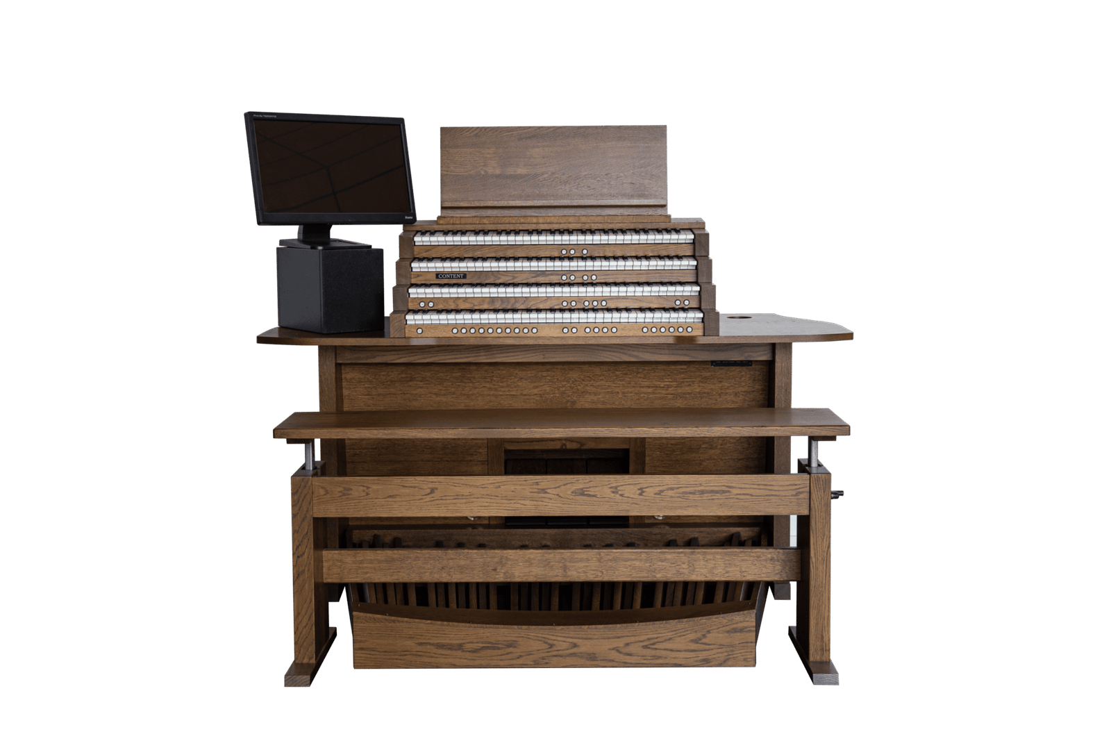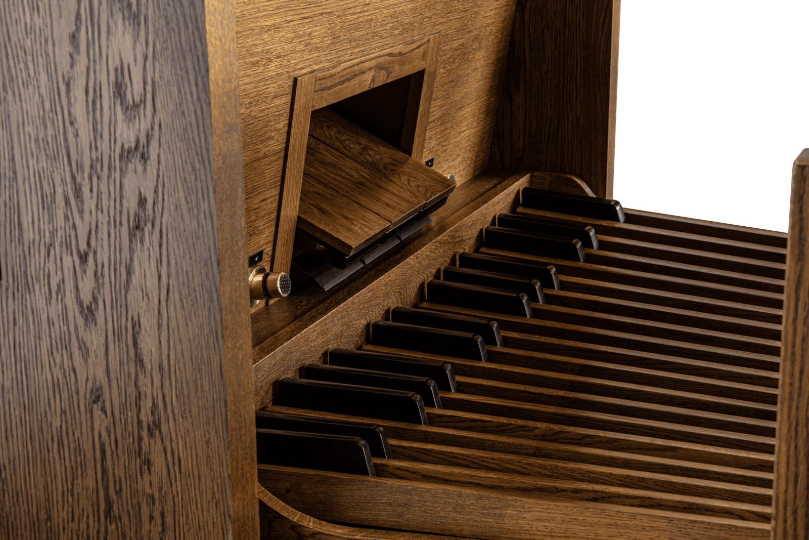 Con la Consola MIDI Cambiare, puedes tocar Hauptwerk™ u otros samplers de VPO con tu propio ordenador y audio. Content Organs te ofrece una hermosa consola con un armario de roble, asegurando que puedas conectar fácilmente esta consola a tu propio sistema de ordenador y audio. Esta es la solución ideal para cualquier organista que ya posea un sistema confiable y esté buscando una configuración de alta calidad para tocar su(s) conjunto(s) de muestras favorito(s). ¡Esto combina más de cuarenta años de experiencia en la construcción de órganos con los desarrollos actuales!