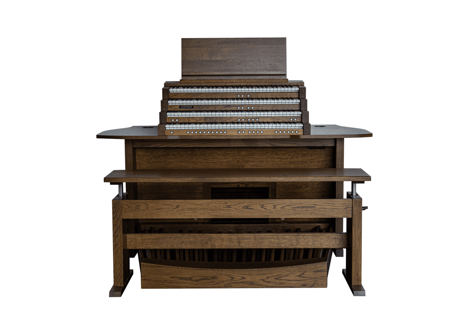 Las consolas de órganos de Content están elaboradas en roble europeo. Gracias a la plantación propia de la empresa gestionada por una carpintería interna, aseguramos la más alta calidad alcanzable. Con el uso de roble resistente, los órganos están disponibles en varios colores de laca, aceite o tinte. Esto permite que un órgano siempre complemente un interior o decoración (futura). Todos los días, varios carpinteros hábiles trabajan diligentemente en la construcción y acabado de los órganos, desde el modelo más pequeño hasta las consolas de órganos exclusivas y personalizadas más grandes.