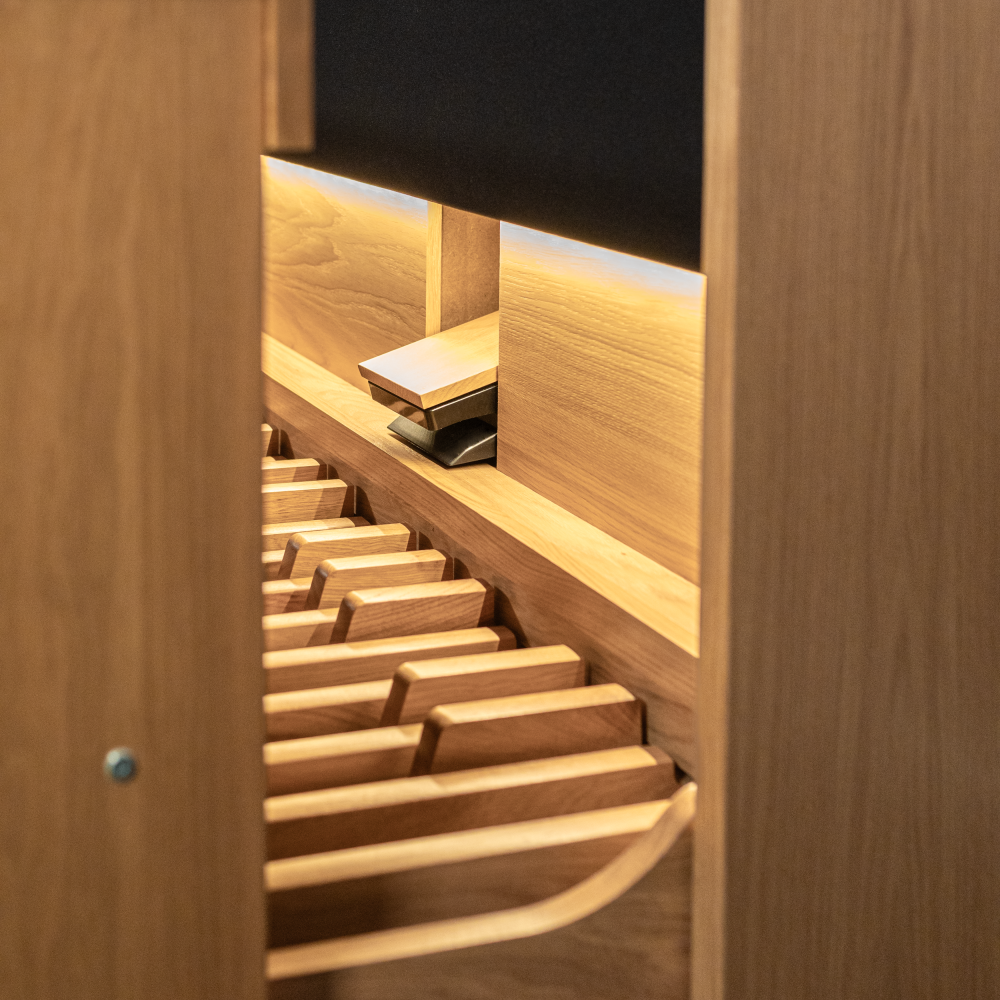 El Compact 224 merece su nombre debido a su construcción compacta y refinada. Sin embargo, en calidad y capacidades, este órgano es igual que cualquier otro. También en este órgano tienes acceso a 4 mundos sonoros únicos (Barroco, Clásico, Romántico, Sinfónico), cada uno con una disposición propia y distintiva. La Tecnología de Invención® permite un sonido detallado y refinado al máximo. Además, la experiencia espacial es incomparable. Un mueble de roble macizo proporciona una apariencia robusta y duradera.