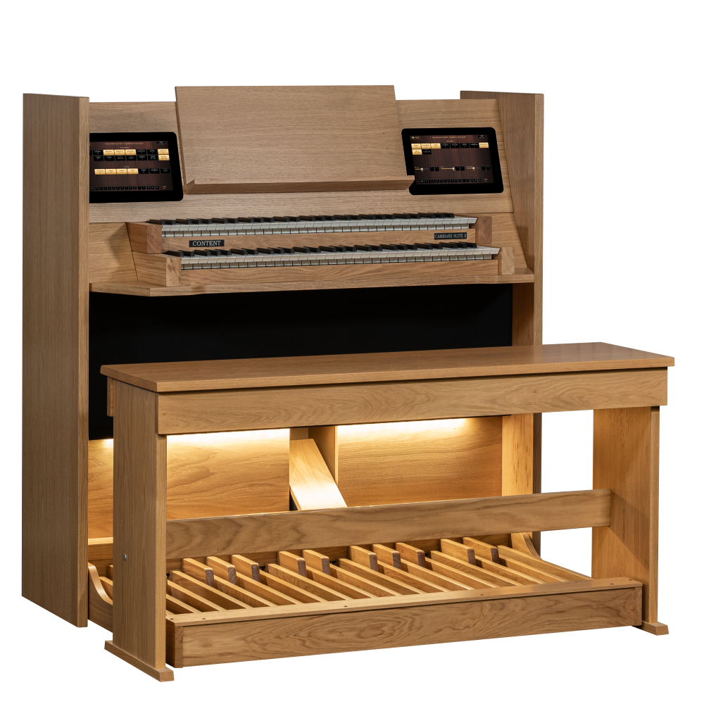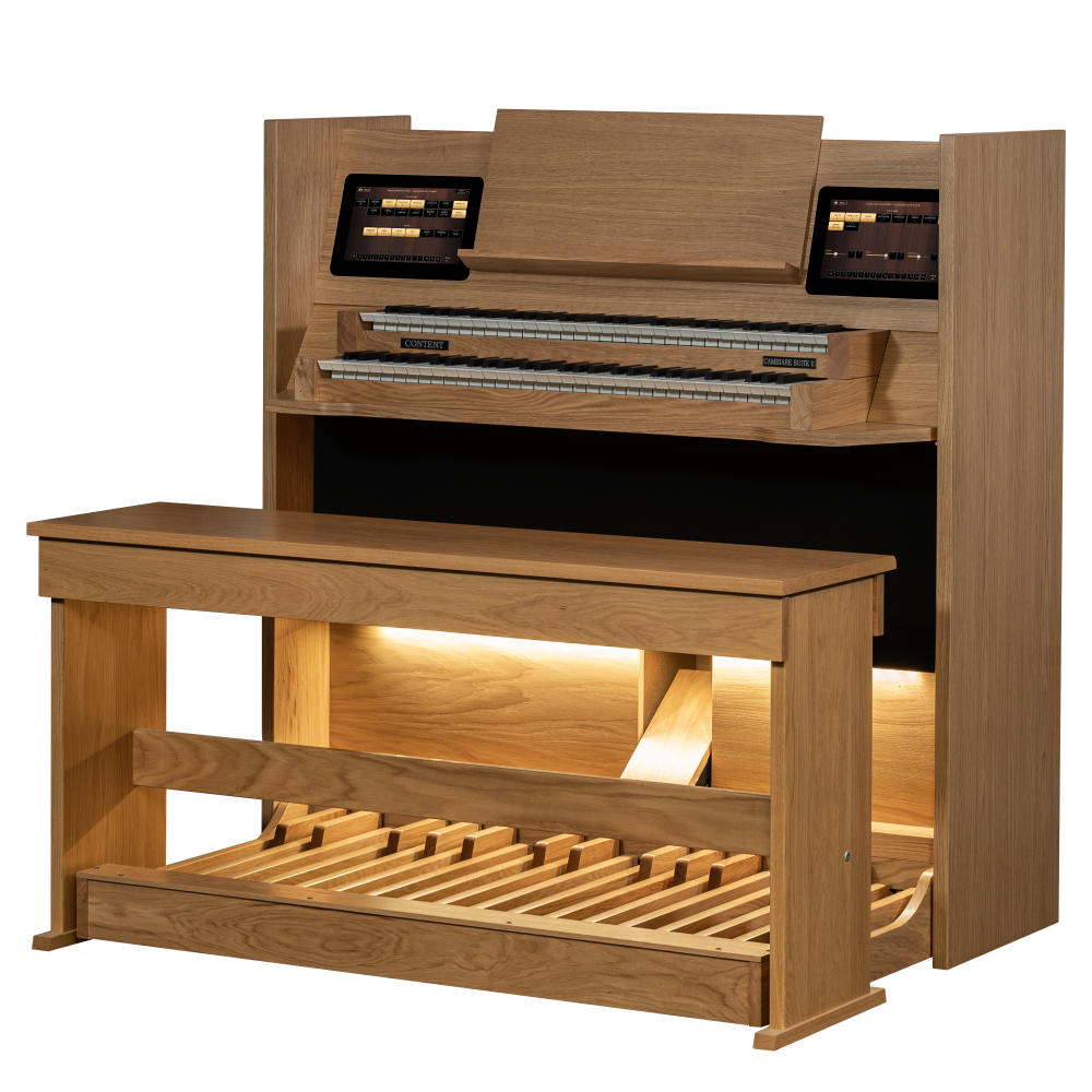 Con el Content Cambiare Suite II, tocar órganos de iglesia en el salón se vuelve accesible para cada organista. La combinación de desarrollos avanzados del taller de órganos de Content y la variada colección de sets de muestras a través del sampler de Sweelinq lleva a un modelo nuevo y de alta calidad en la colección Cambiare. La asequibilidad y la calidad van de la mano con el Cambiare Suite II. El Cambiare Suite también está disponible en una versión con tres manuales, el Cambiare Suite III.