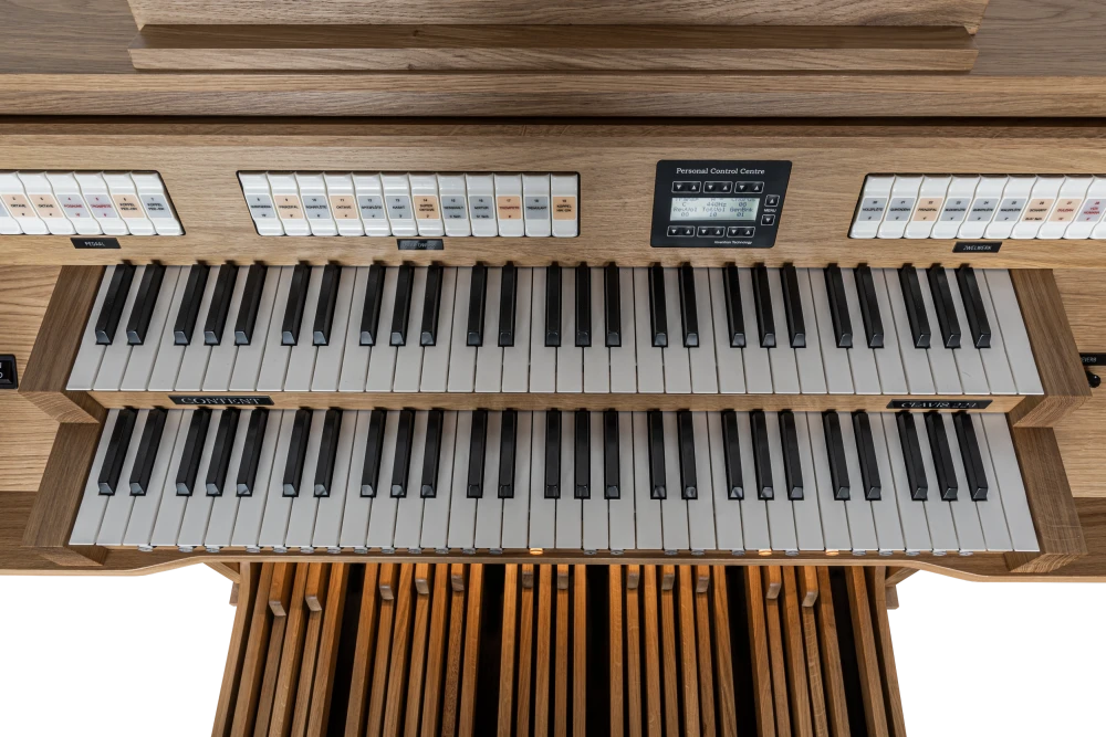 El sistema de sonido altamente equilibrado, combinado con un programa avanzado de reverberación, Virtual Player Position y la amplia configuración de 6 canales, asegura una experiencia musical transparente y cautivadora. Mientras se registran, se puede escuchar cada registro distintivamente, incluso en el conjunto completo, sin comprometer el sonido. Con el Centro de Control Personal, el órgano se puede ajustar y configurar fácilmente según las preferencias personales. Este órgano proporciona años de placer de tocar y escuchar tanto para el intérprete como para el público, ya sea en un entorno de órgano doméstico o en una pequeña sala o estudio de música.