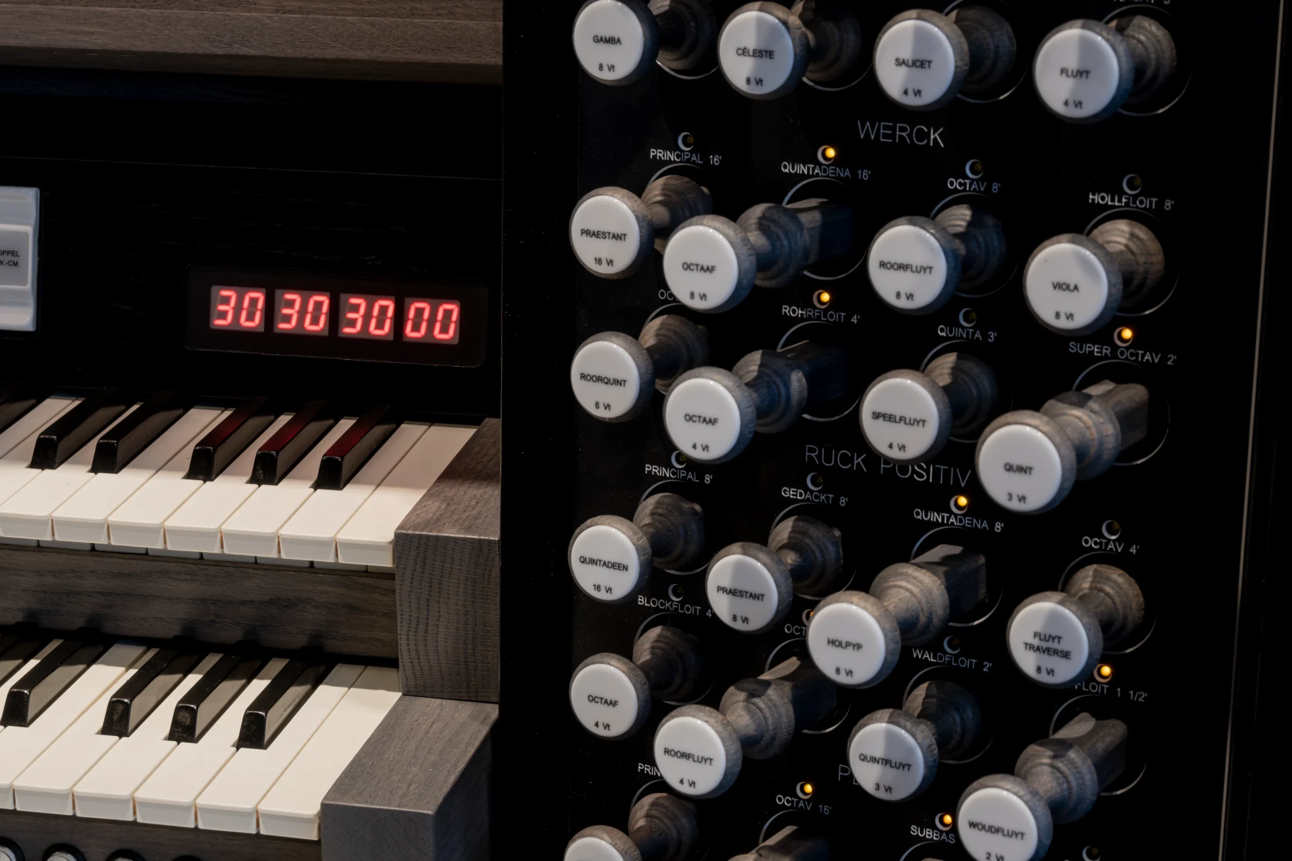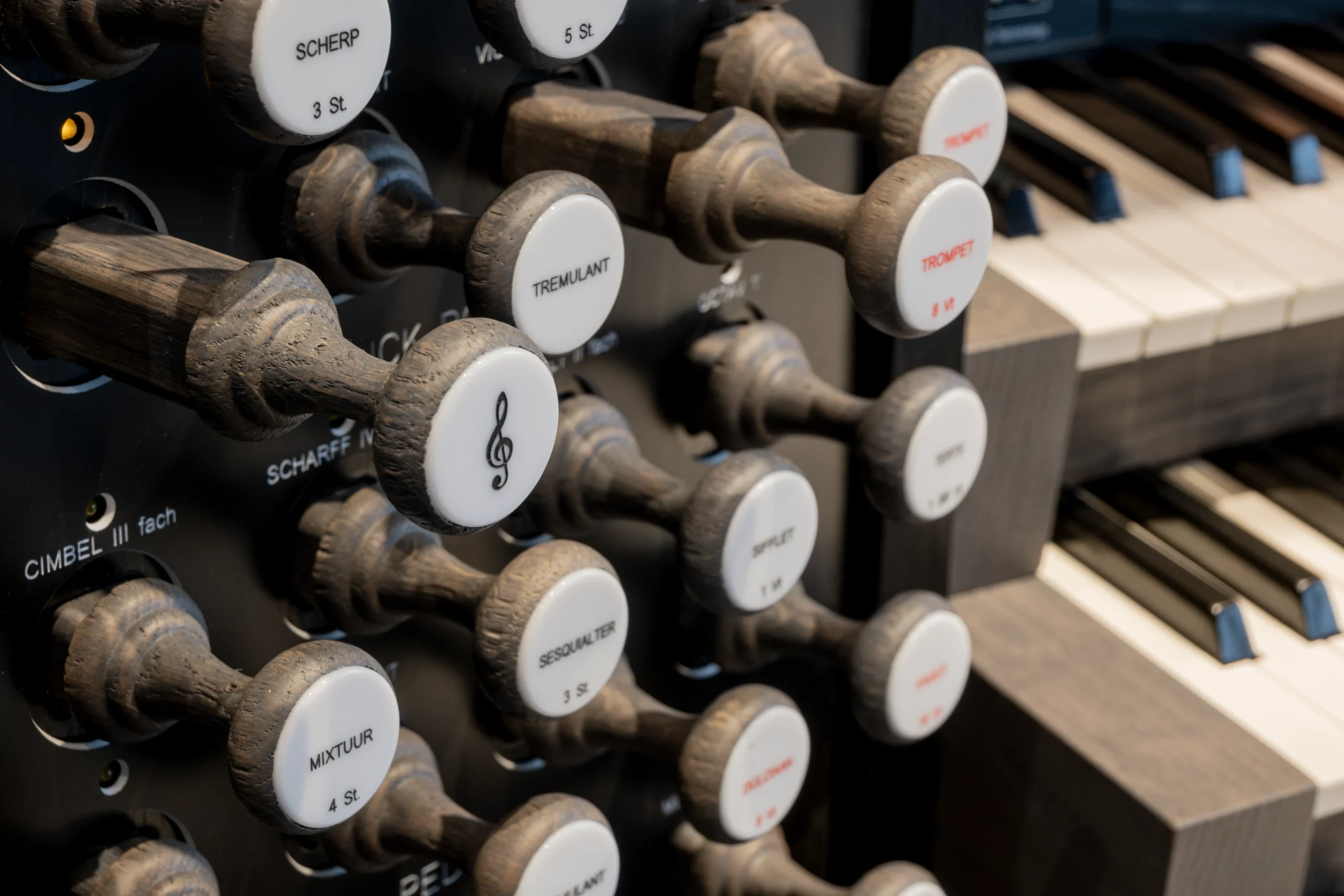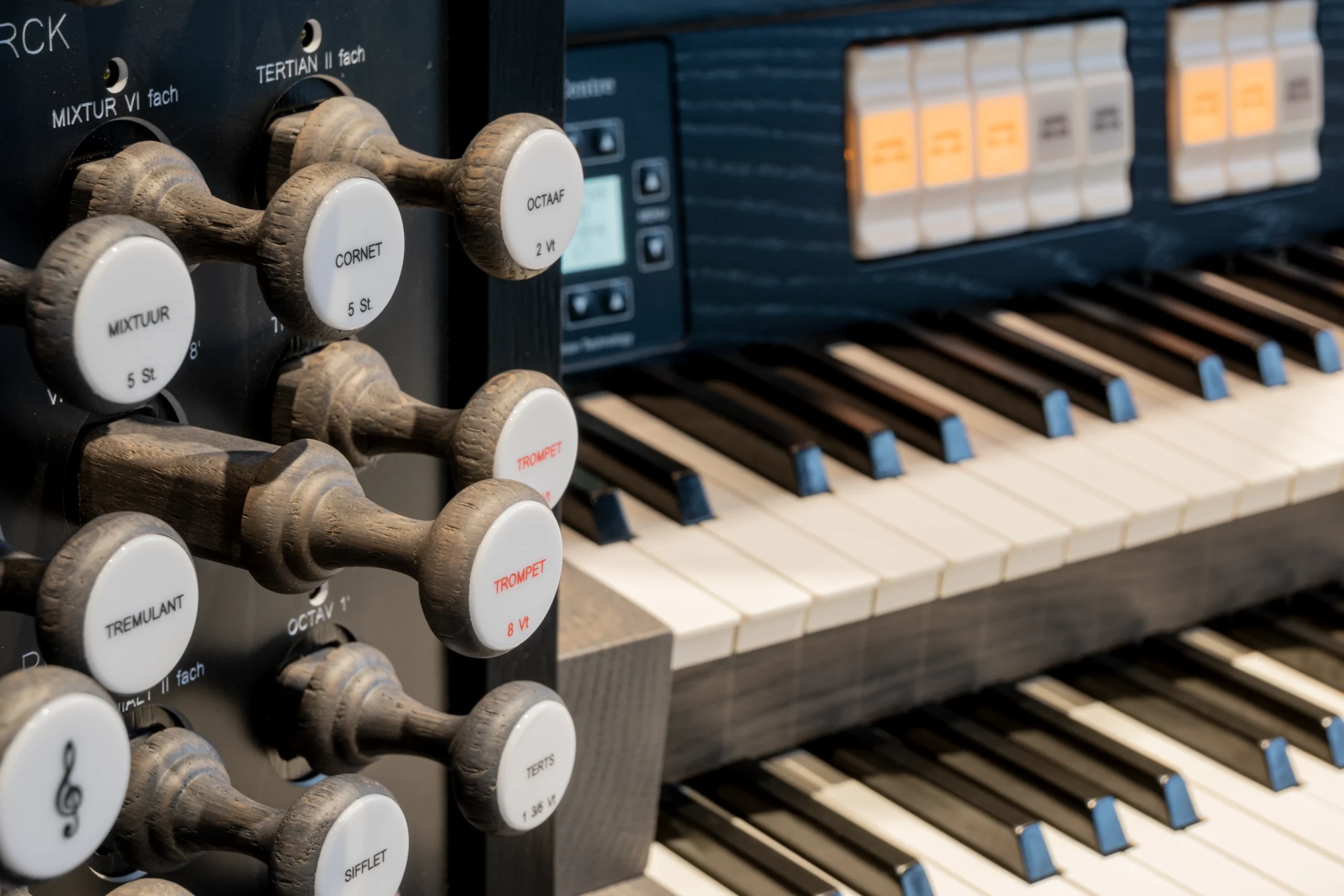 “Mi órgano es mi orquesta” es un dicho conocido del organista y compositor francés César Franck. Más adecuadamente, el arte de la registración no puede ser resumido. Un órgano consta de registros fundamentales (prestantes y flautas), registros compuestos (Mixtuur, Scherp, etc.) y registros de lengüeta (Trompeta, Vox Humana, Bazuin). Varios registros también pueden ser utilizados individualmente como registros solistas. Registros solistas conocidos en los órganos holandeses incluyen el Cornet, Vox Humana, Trompeta o Sesquialter. En el Content Concerto, puedes encontrar estos registros. ¡Descubre la riqueza de posibilidades y colores tonales del antiguo órgano de tubos!