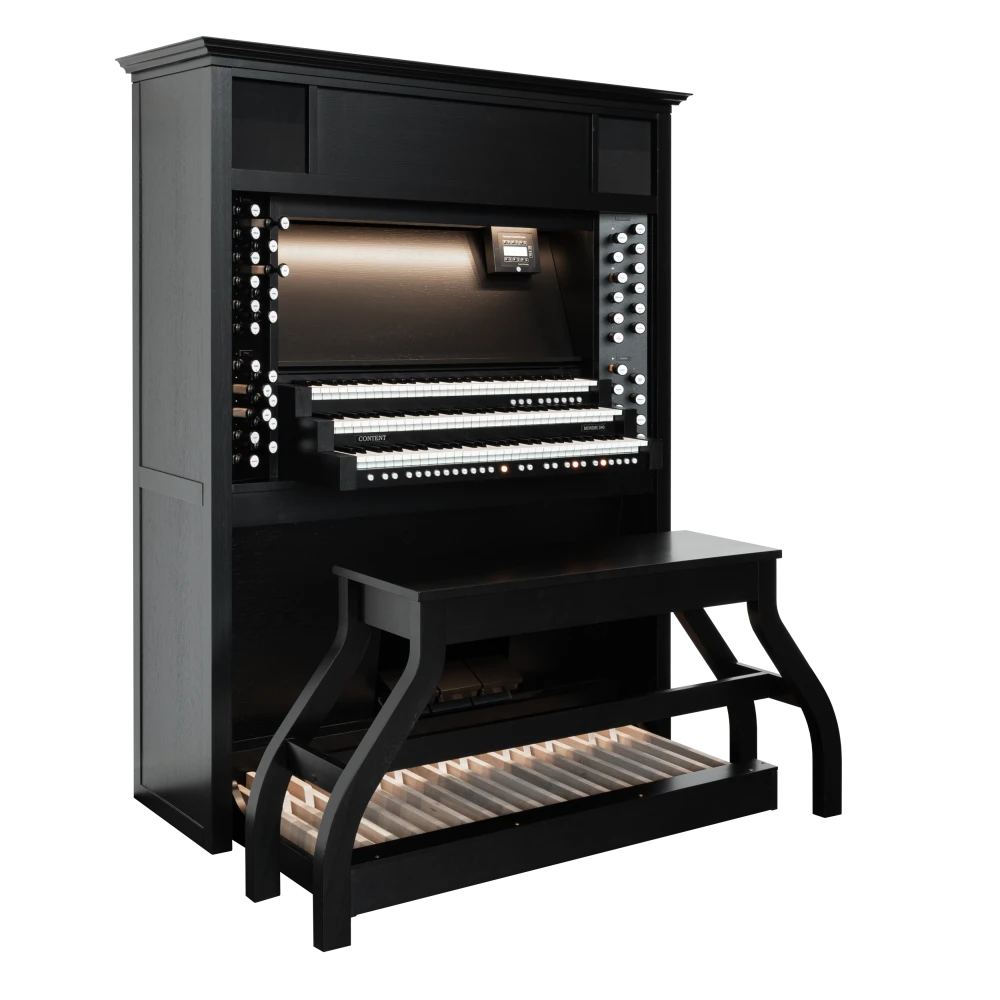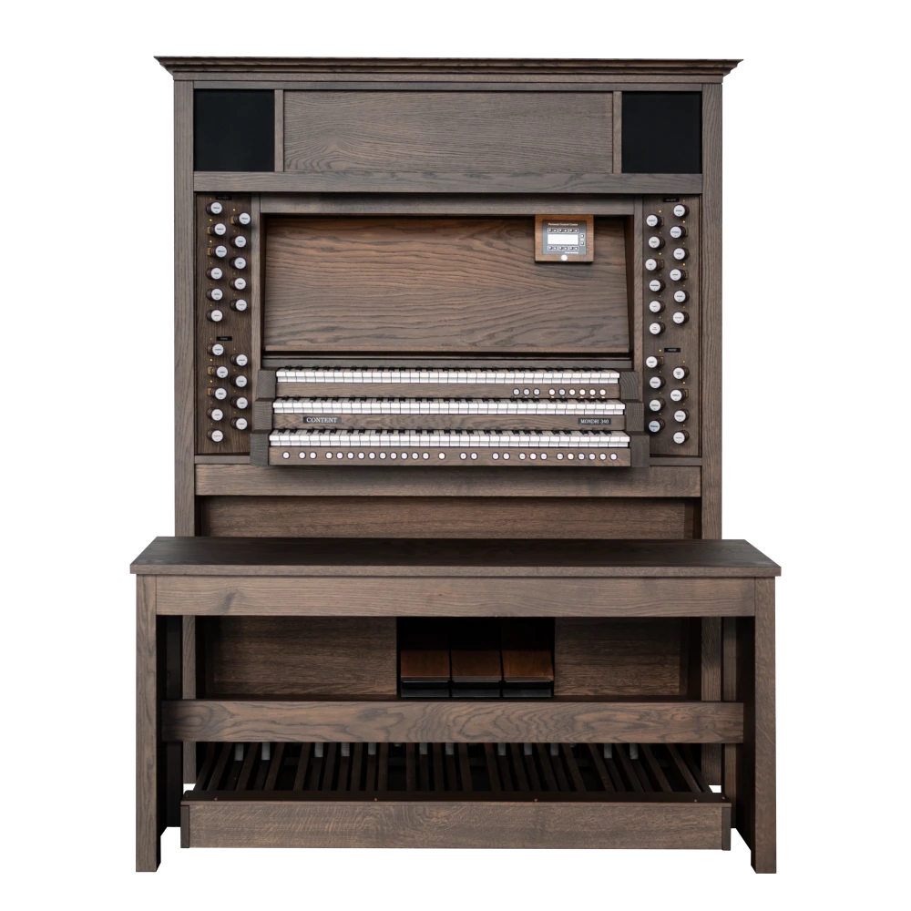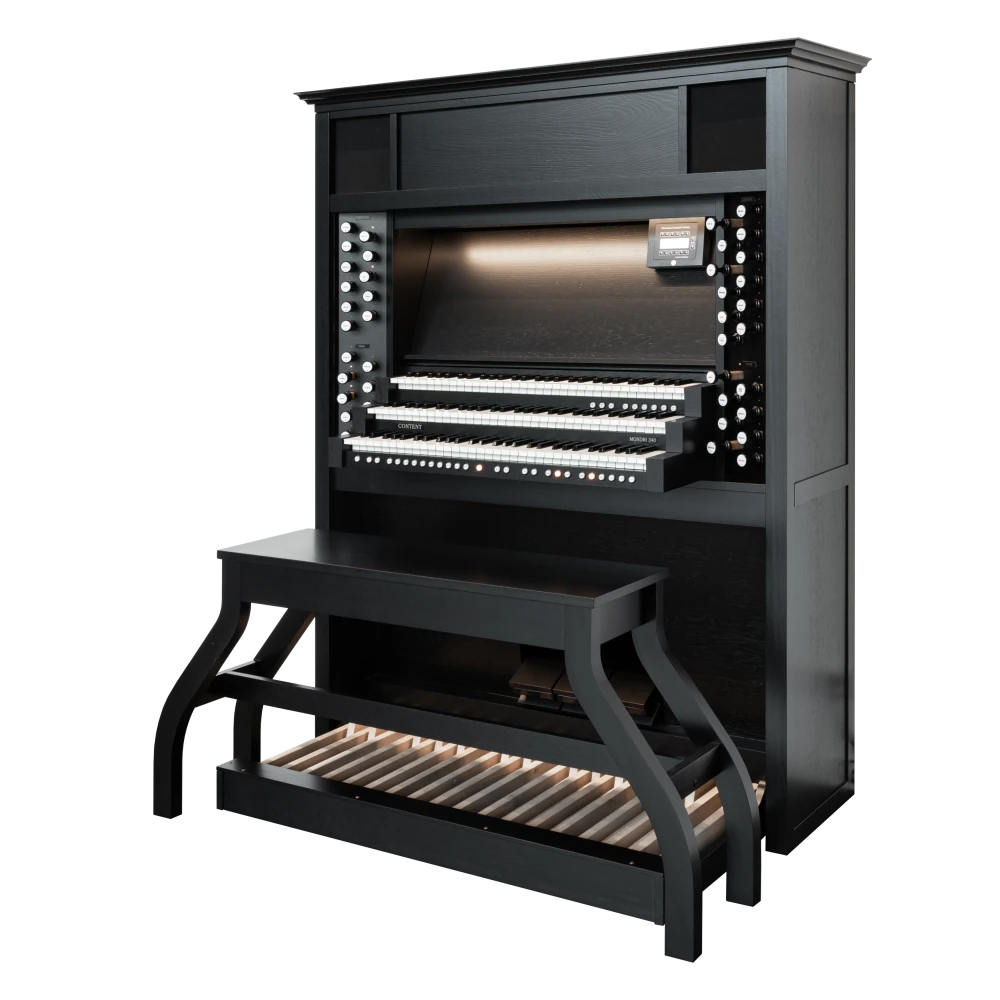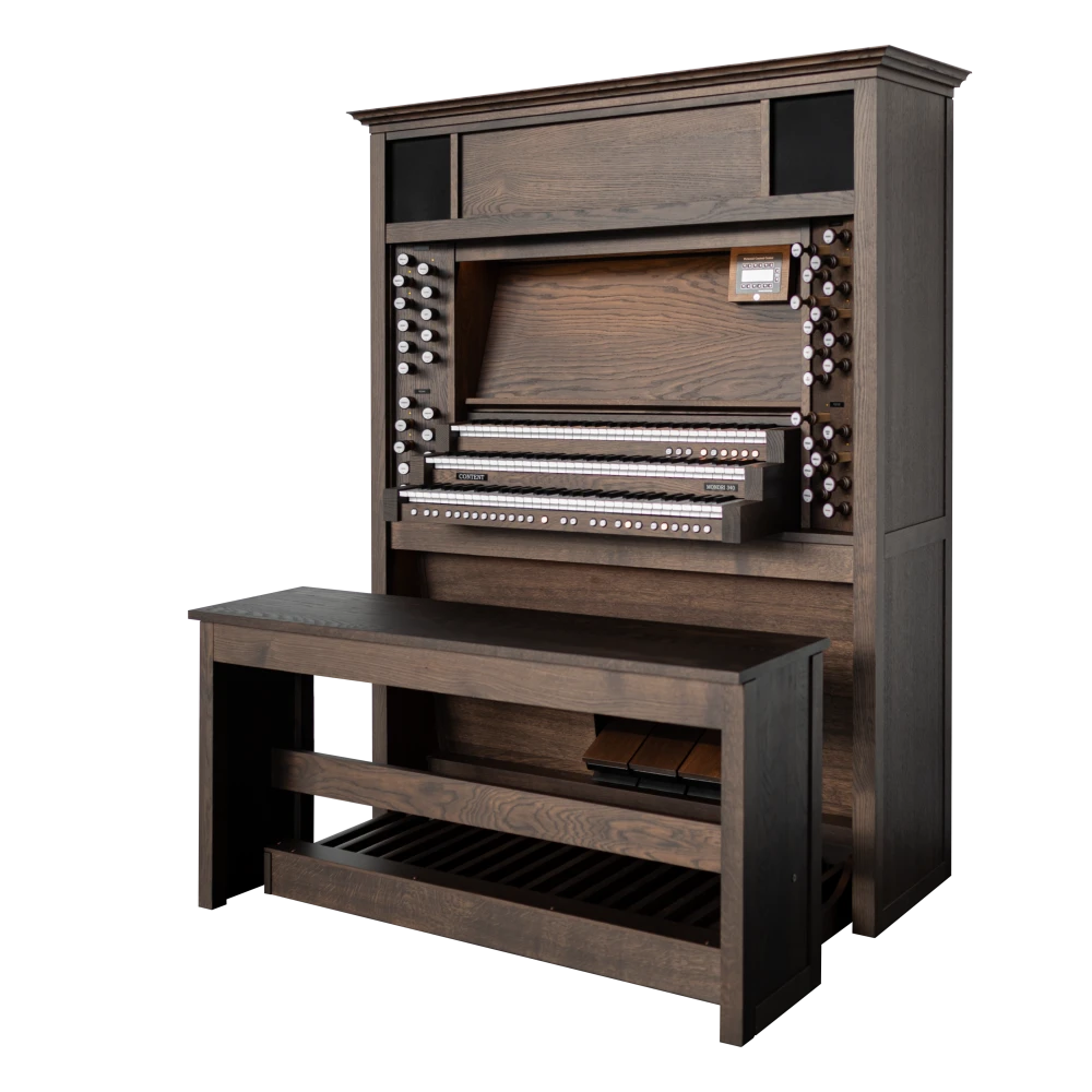 La serie Content Mondri ha sido una elección bien establecida y consistentemente apreciada entre los organistas durante muchos años. Estamos emocionados de presentar un nuevo modelo a nuestra colección: ¡el Mondri 340! Elaborado con pasión y la atención al detalle que esperas de Content. Con tiradores de madera, integrados en un robusto gabinete positivo hecho de auténtica madera de roble, el Mondri proporciona la experiencia de un órgano de tubos. Con altavoces en la parte inferior, delantera y superior del instrumento, la proyección del sonido se acerca a la sensación de una gran iglesia. Los modelos Content Mondri están disponibles en varias configuraciones. Puedes elegir entre elegantes cornisas, un elegante banco de órgano, teclados con revestimientos de madera o la adición de voces orquestales como flauta de pan, trompeta, piano y docenas de otras voces. Los teclados estándar incorporados sensibles al tacto completan los órganos Mondri.