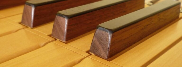 - Material: Teclas de fibra con un núcleo de madera, montadas sobre un carril de acero.
