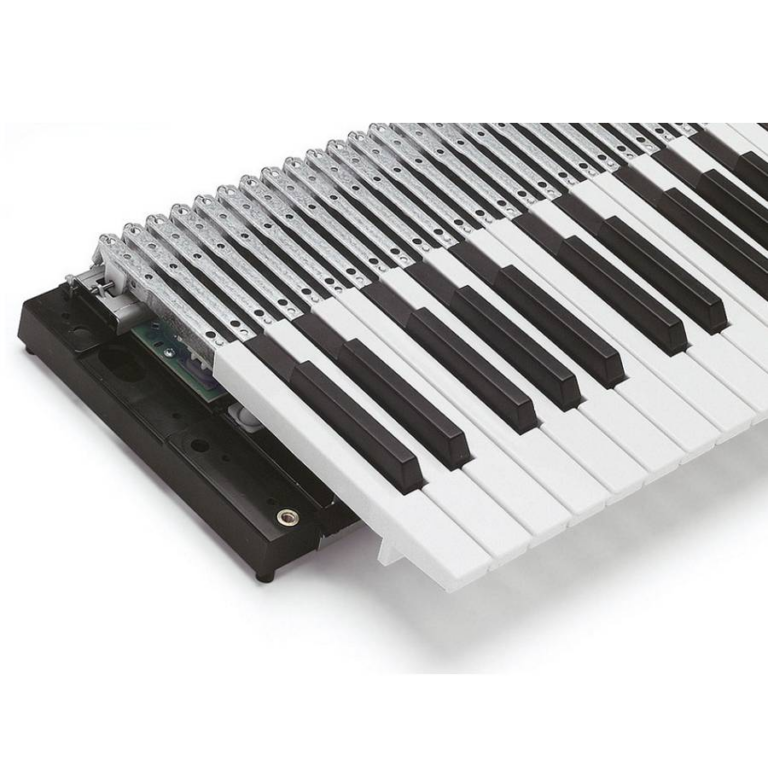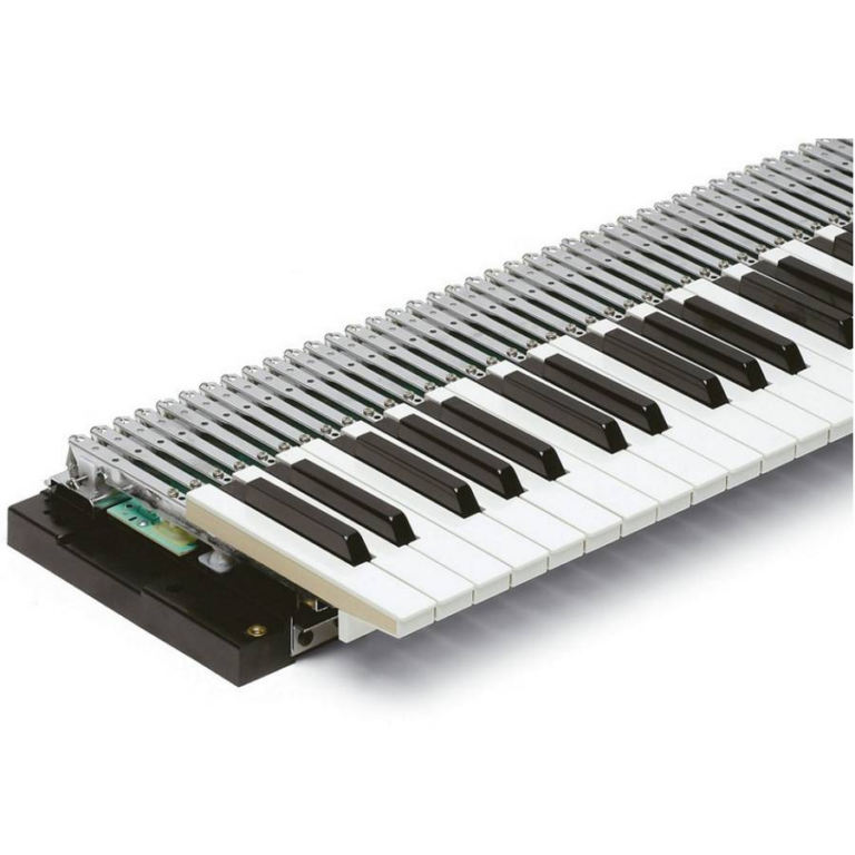 - Material: Teclas hechas completamente de madera, tanto en la superficie como en el núcleo, con carril de acero para mayor estabilidad.